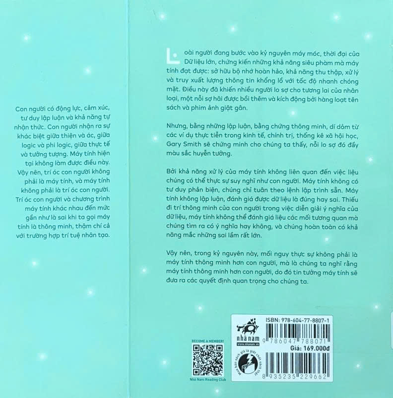 Với lối viết gần gũi, lập luận rõ ràng cùng nhiều ví dụ dễ hiểu, sách phù hợp cho những ai quan tâm đến công nghệ, dữ liệu và tư duy phản biện. Một lựa chọn nhẹ nhàng nhưng giàu giá trị, giúp bạn đọc suy ngẫm kỹ hơn trước làn sóng AI đang lan tỏa mạnh mẽ trong đời sống hiện nay.